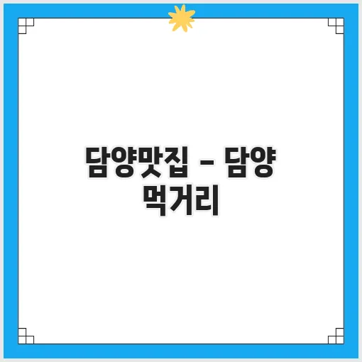 담양에서 추천하는 맛집 리스트
