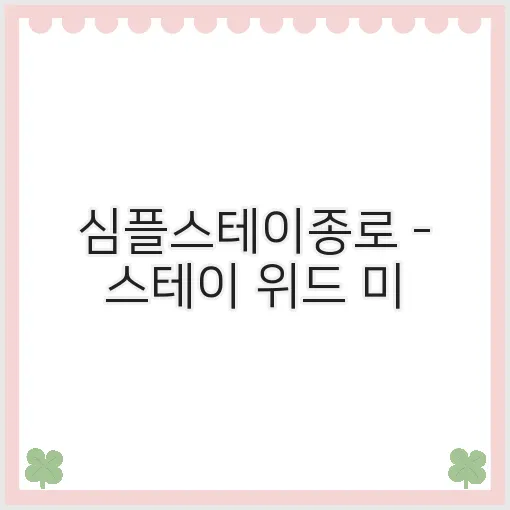 오늘은 서울 종로구에 위치한 심플스테이종로에 대해 이야기해 보려 합니다. 여행 준비가 되셨나요? 이 장소는 특히 '스테이 위드 미', '스테이원', '올스테이'와 같은 옵션을 제공하여 다양한 여행객의 수요를 충족시키는 매력적인 숙소입니다. 교통이 편리하고 합리적인 가격대의 숙소가 필요하신 분들에게 강력히 추천드립니다. 자, 그럼 함께 심플스테이종로를 탐험해 볼까요?